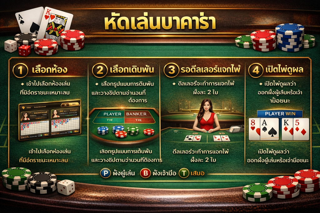 ผมผ่านการเล่นบาคาร่ามาหลายรูปแบบ ตั้งแต่เล่นตามอารมณ์จนเสียยับ ไปจนถึงช่วงที่เริ่มเข้าใจโครงสร้างของเกมจริง ๆ สูตรบาคาร่าเบื้องต้นจุดเปลี่ยนไม่ใช่เพราะได้สูตรลับอะไร แต่เพราะผมเริ่ม “อ่านจังหวะโต๊ะ” เป็น วันนี้ผมจะอธิบายแบบละเอียดหัดเล่นบาคาร่าตามขั้นตอนที่ผมใช้จริงเวลาอยู่หน้าโต๊ะ